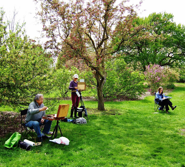 Urban Sketcher roughing it on a cold winter's day in the Reading Room at the State Historical Society The people in these photos are having almost as much fun as plein air painters do but usually in more comfortable conditions. They are the members of Urban Sketchers Madison https://drawmadison.blogspot.com/ a regional Chapter of the international group called Urban Sketchers www.urbansketchers.org/ which is 10 years old this year. We meet usually twice a month to sketch together for a couple hours and share our sketches and experiences with each other and we would like to invite anyone with an interest in drawing from life to join us. You can find our schedule by clicking Events on our blog. For several years we sketched as members of Draw Madison a local group inspired by Urban Sketchers to draw in our community and wherever we traveled. In 2016 we were invited to apply to for Regional Chapter status in Urban Sketchers and we have been Urban Sketchers Madison since then. Urban Sketching is a lot like plein air painting in that we are working from what we see in front of us in whatever is the medium of our choice. And we paint outdoors as much as the weather permits and find cozier places when it is cold or rainy outdoors. We invite anyone who is interested to come sketch with us. There are no dues and no experience necessary. If you have a question please feel free to contact me at pwafer@charter.net. |
